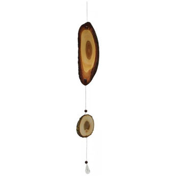 Wunderschönes, natürliches Windspiel aus Holz, mit schönem Kristall.
