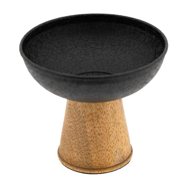 Räucherkelch in schlichter Eleganz. Pulverbeschichtetes Eisen mit Mangoholzfuss.
