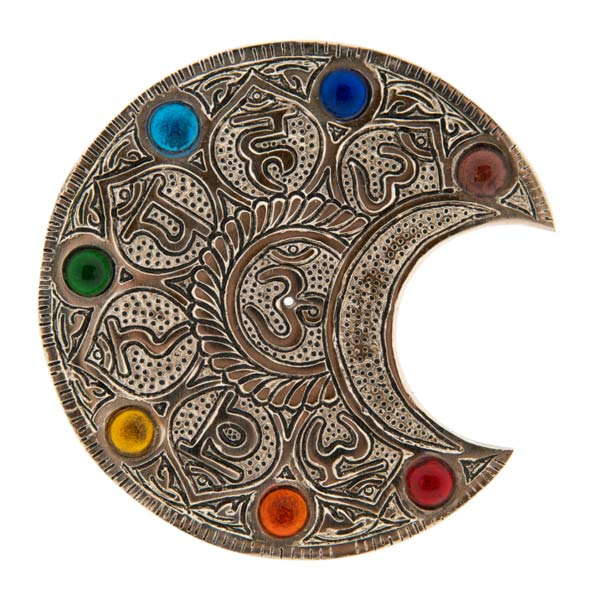 Stäbchenhalter - Mond mit Mantra und Chakraglassteinchen