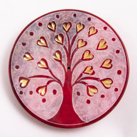 Lebensbaum Herzchen, rot Süßer, kleiner und bunter Räucherstäbchenhalter aus Speckstein. Handgraviert und bemalt. Dieser Kleine verzaubern jedes Ambiente.