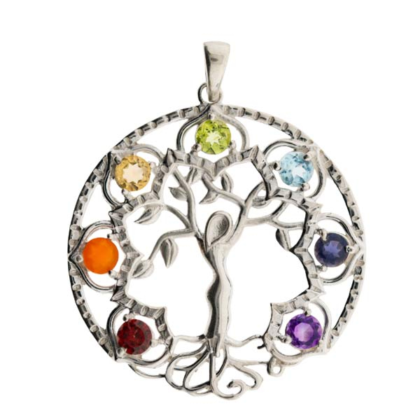 Elfenbaum mit Chakrasteinen, 925 Sterling Silber