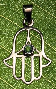 Anhänger mit Handchakra aus blauem Topaz