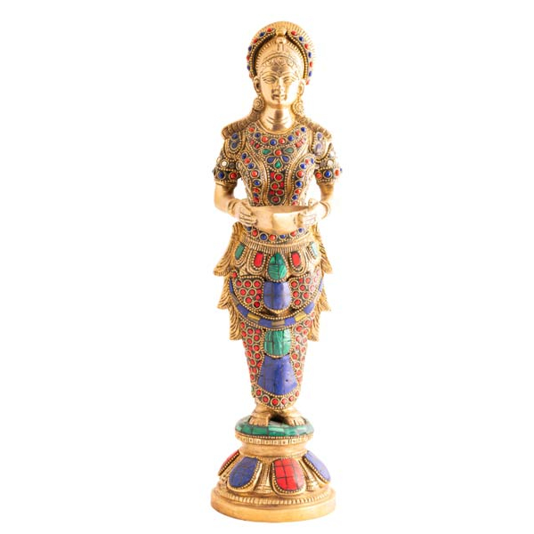 Messing, kunstvoll mit Steinen verziert. H: 36 cm, 2,8 kg