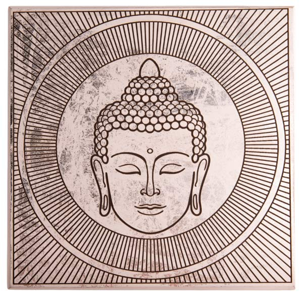 Produktbeschreibung zu Energiebild Buddha Weiss/Silber: