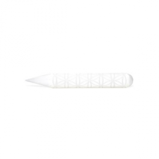 Massagestab mit eingraviertem Blume des Lebens Symbol. Zur Verwendung in der Massage oder Edelsteintherapie. Der Selenit Massagestab eignet sich besonders zur Akupressur- oder Triggerpoint-Massage.